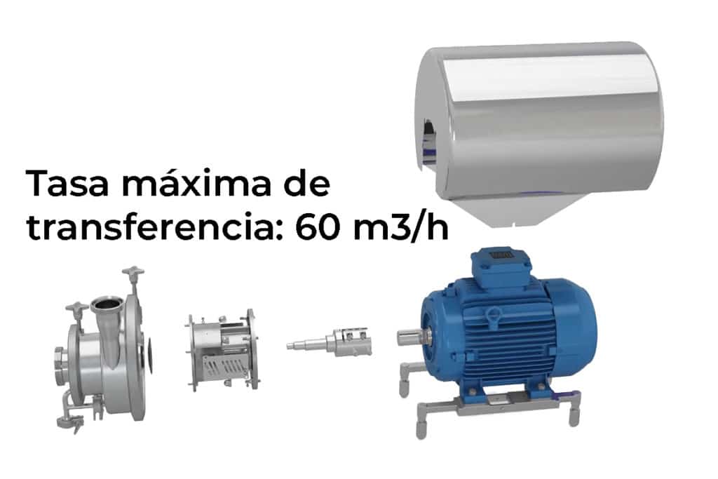 Esta serie se compone de dos modelos, ambos con turbina abierta, eje independiente y motor estándar IEC. La construcción de esta bomba sanitaria centrífuga autoaspirante es mixta, compuesta con una fundición/estampación en inoxidable AISI-316-L (1.4404) - CF3M (1.4409).