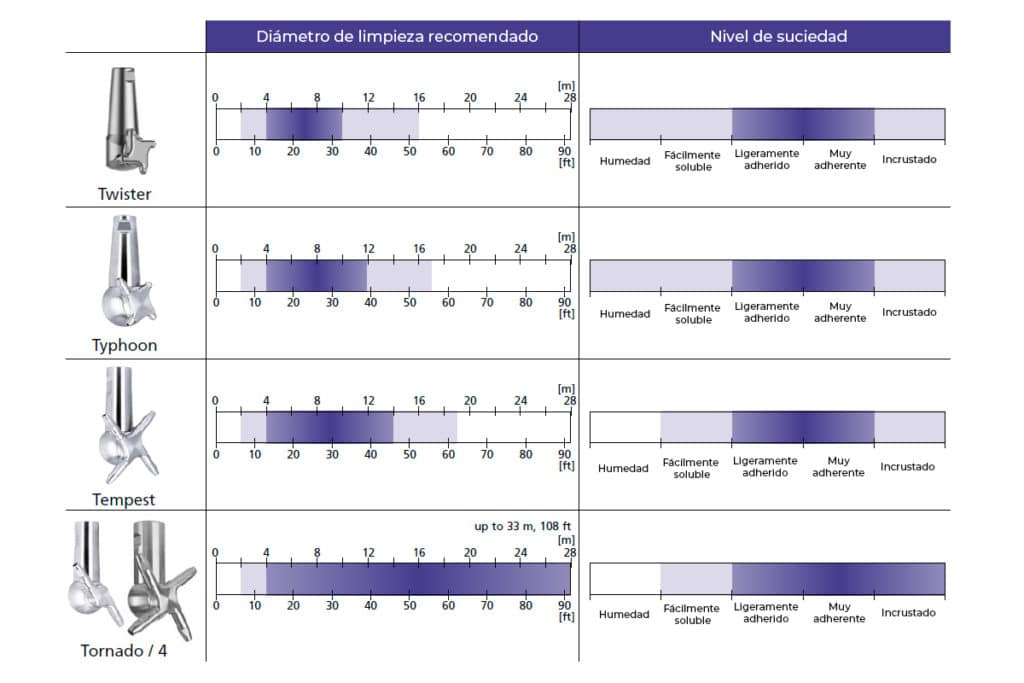 Los modelos orbitales alcanzan 360º y soportan una presión de entre 4 y 10 bar (excepto el Jumbo 6 que alcanza los 12):