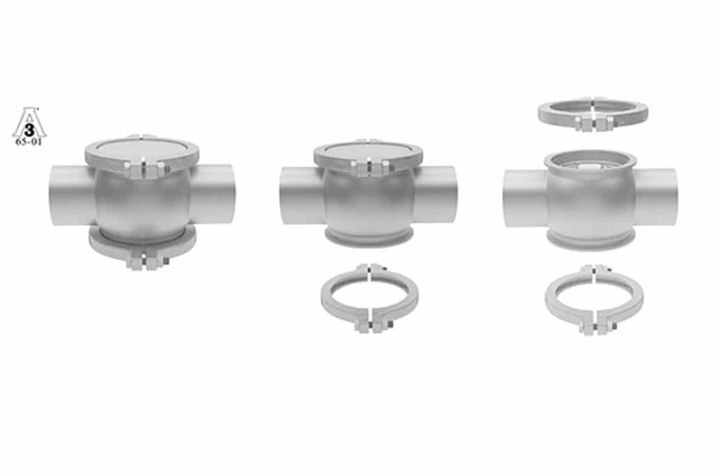 BBVAR es una serie de conexiones multifuncionales para la aplicación en línea de tuberías que permite el control visual (siempre que esté equipado con una mirilla de cristal fundido), la supervisión del procesamiento de fluidos y un control directo del producto si está equipada con instrumentos de medición especiales disponibles por Quilinox.