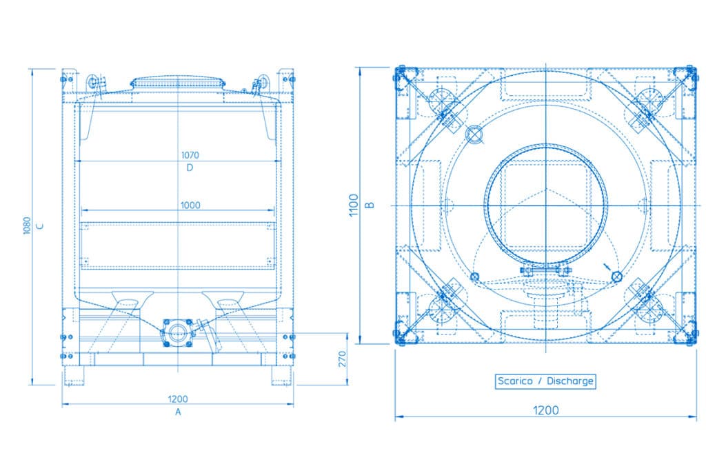 El contenedor paletizado AZ-E cumple con la normativa DIN establecida en la sección 16 UN-APP-RID para el transporte y almacenamiento de líquidos peligrosos con densidad no superior a 1.85 kg/dm3, grupos de embalaje II y III.