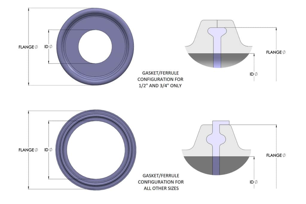 Diseñadas y fabricadas para proporcionar una suave transición a través del agujero tras completar el asamble. Las juntas se producen a partir de compuestos que cumplen con la FDA para caucho y materiales similares. También para el los estándares 3A.