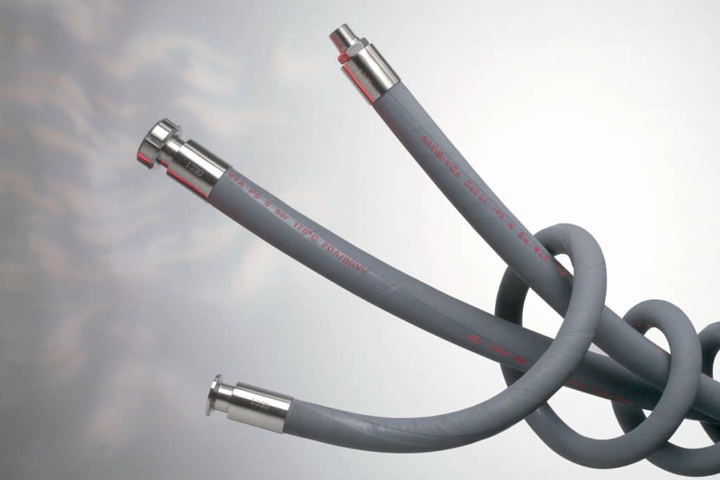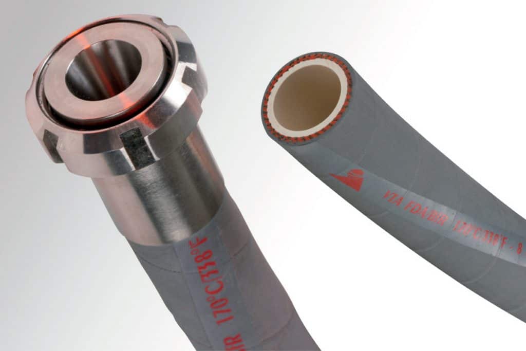 Manguera versátil compatible con la mayoría de los productos alimenticios de alta presión y sistemas de vapor no permanentes.