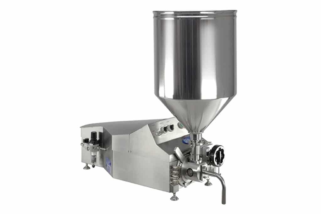 La máquina de llenado volumétrica es un equipo semiautomático pensado para rellenar fluidos espesos como geles higienizantes o siropes. Tiene gran versatilidad al poder realizar con una sola descarga un llenado desde 10 ml hasta 1 litro gracias a los tres tamaños estándar de conjuntos de bombas.