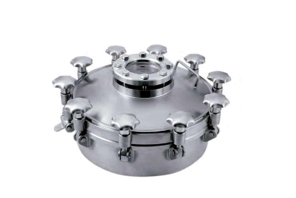 Tapa superior con apertura externa homologada PED. Temperaturas soportadas entre 50 y 250ºC, y presión máxima de 19 BAR según configuraciones. Número de volantes desde 4 a 14 según petición.